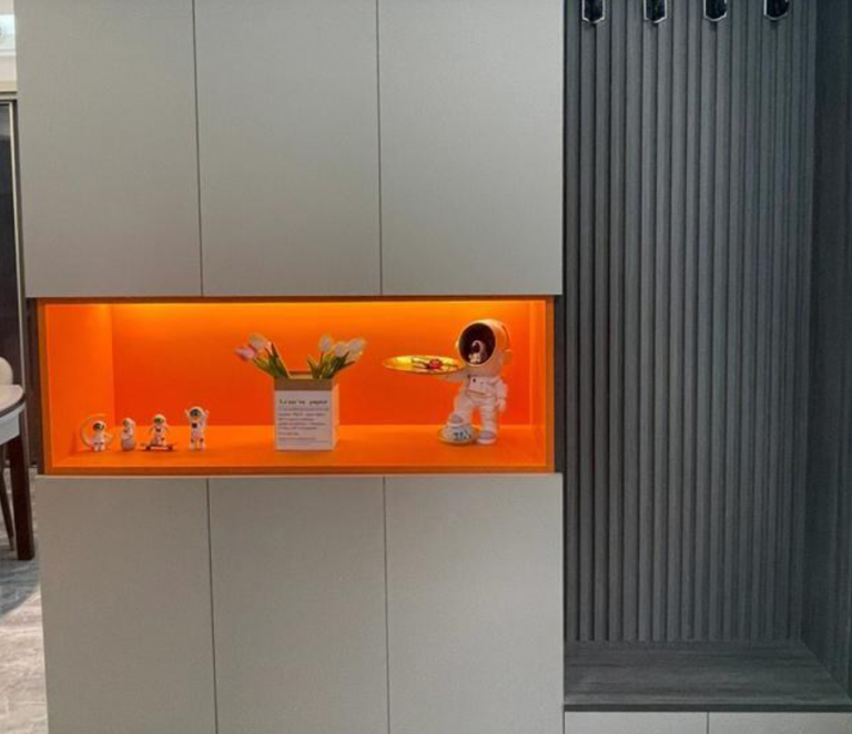 辛辛苦苦換來的房子,利用廚房門左側的位置,設計了小酒柜,可以增加一些儲物空間,更為合理把空間利用起來,顯得很有設計感。可以看到,不管是酒還是一些小擺件,都可以方便收納起來,可以起到一定的裝飾效果!